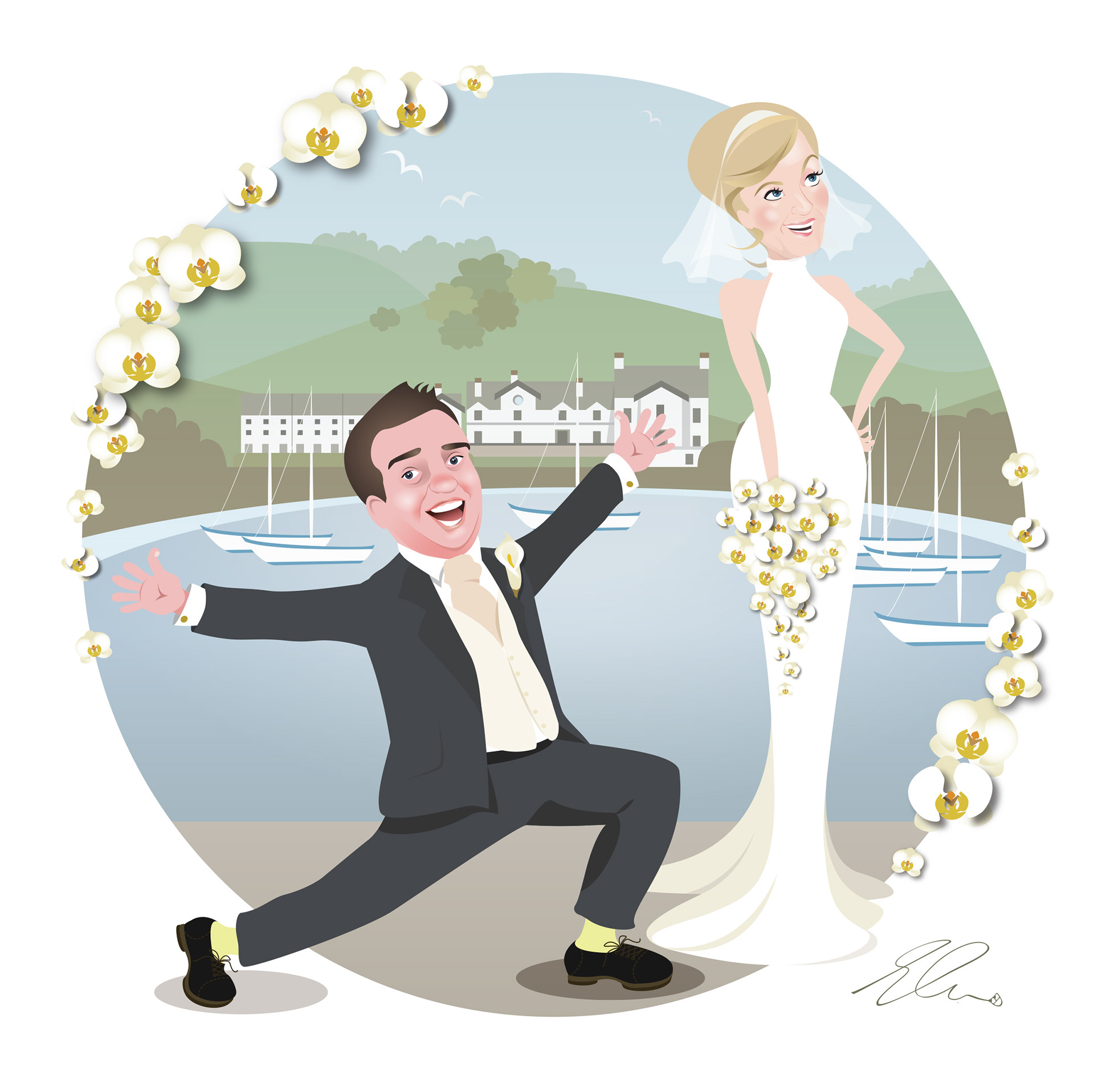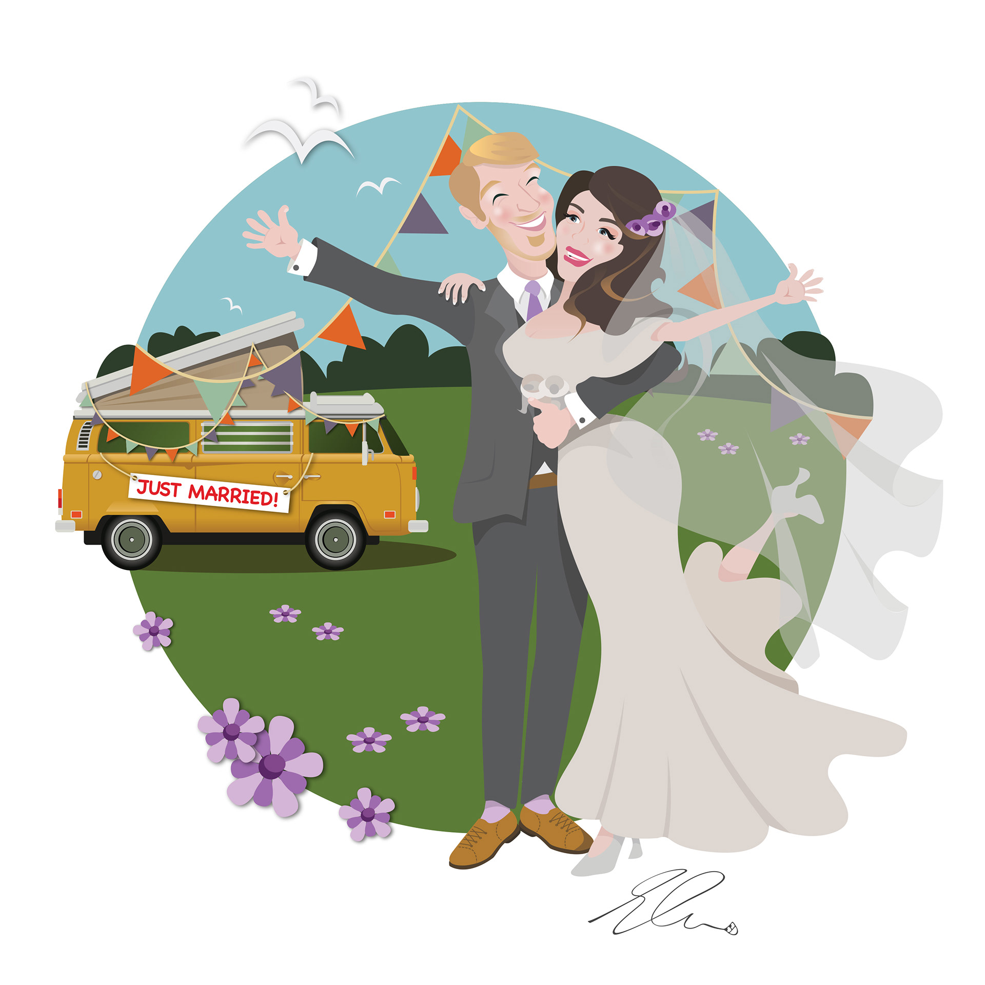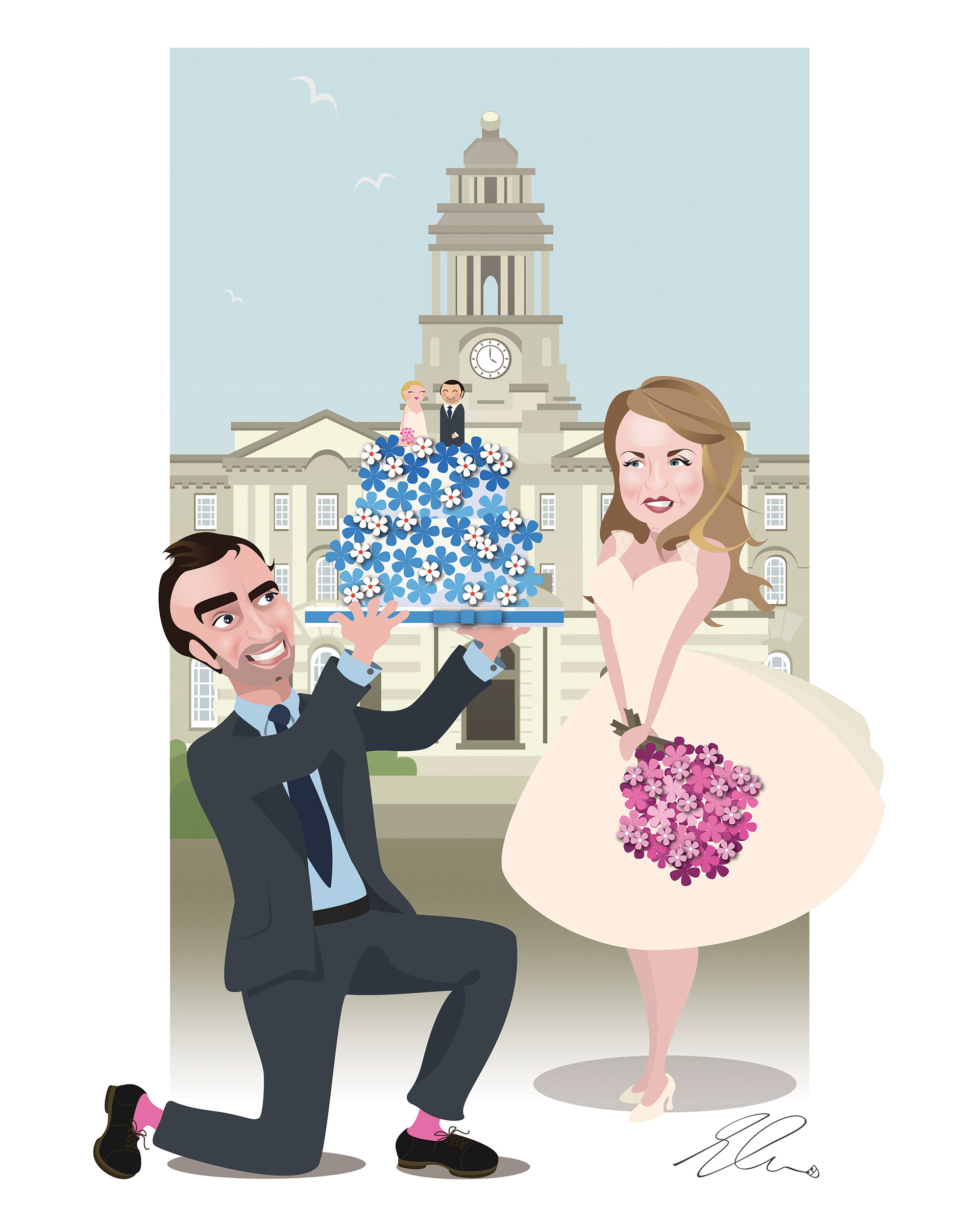 Caricature portraits of the happy couple on their big day. All private commissions.